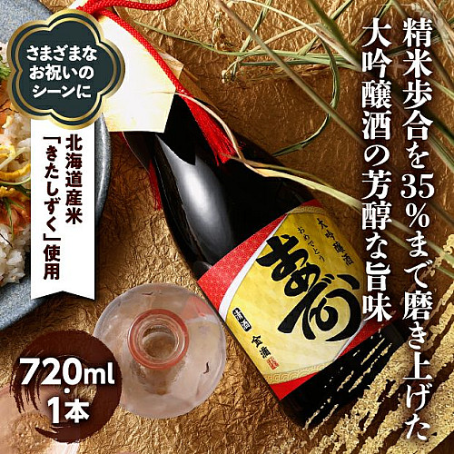 「おめでとう」の祝意を「寿」の文字に込めました。新十津川町産酒造好適米「きたしずく」を35%まで磨き上げ雑味を抑えた逸品。新年を迎えるお祝い、二十歳のお祝い、お誕生祝い等、一年中さまざまな「おめでとう」のシーンにご利用いただけます。